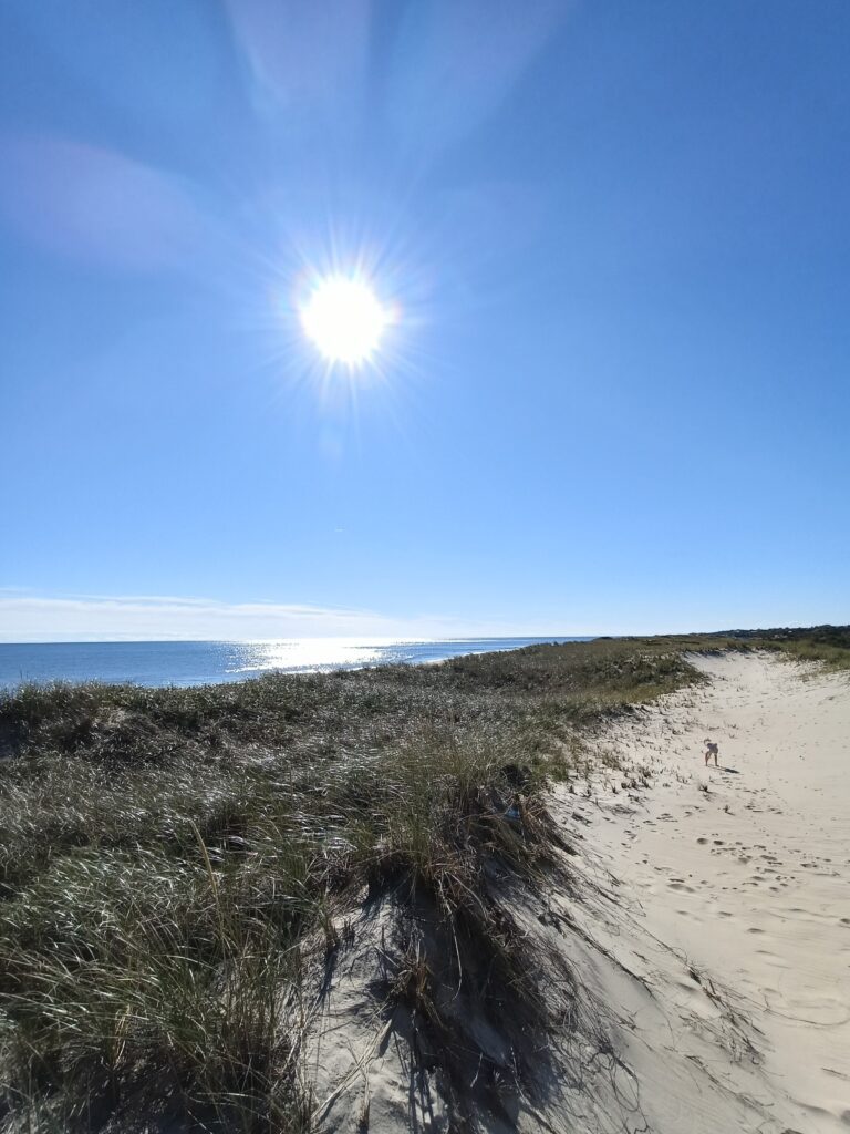 Both beaches were empty and we spotted dolphins from the coast. There’s not many facilities at either so take food and drinks if you plan to be there a while. I can imagine it’s busier in summer, but on a blue-sky autumn day we had so much fun running, paddling and exploring the dunes.
