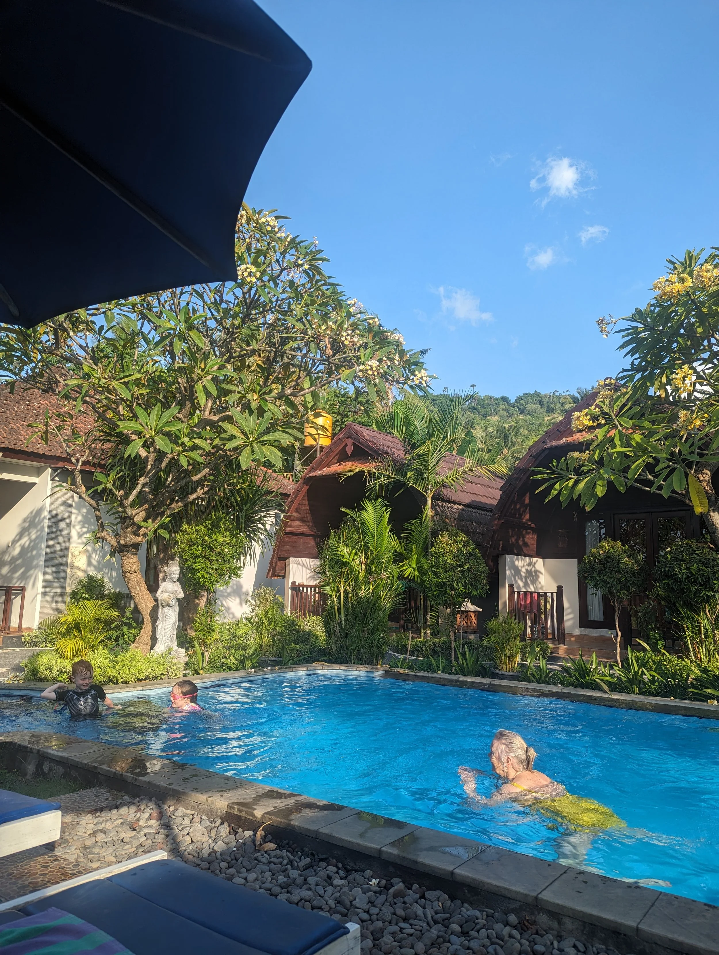 We booked ourselves into a guest house, Ghamed Sari with a pool which turned out to be very handy with Nyle being under the weather, but it was also only a 2 minute walk to the main stretch of beach, Amed beach. The hotel was very clean, comfortable and the food they offered was great quality and price – breakfast was included but we also had drinks and food around the pool.