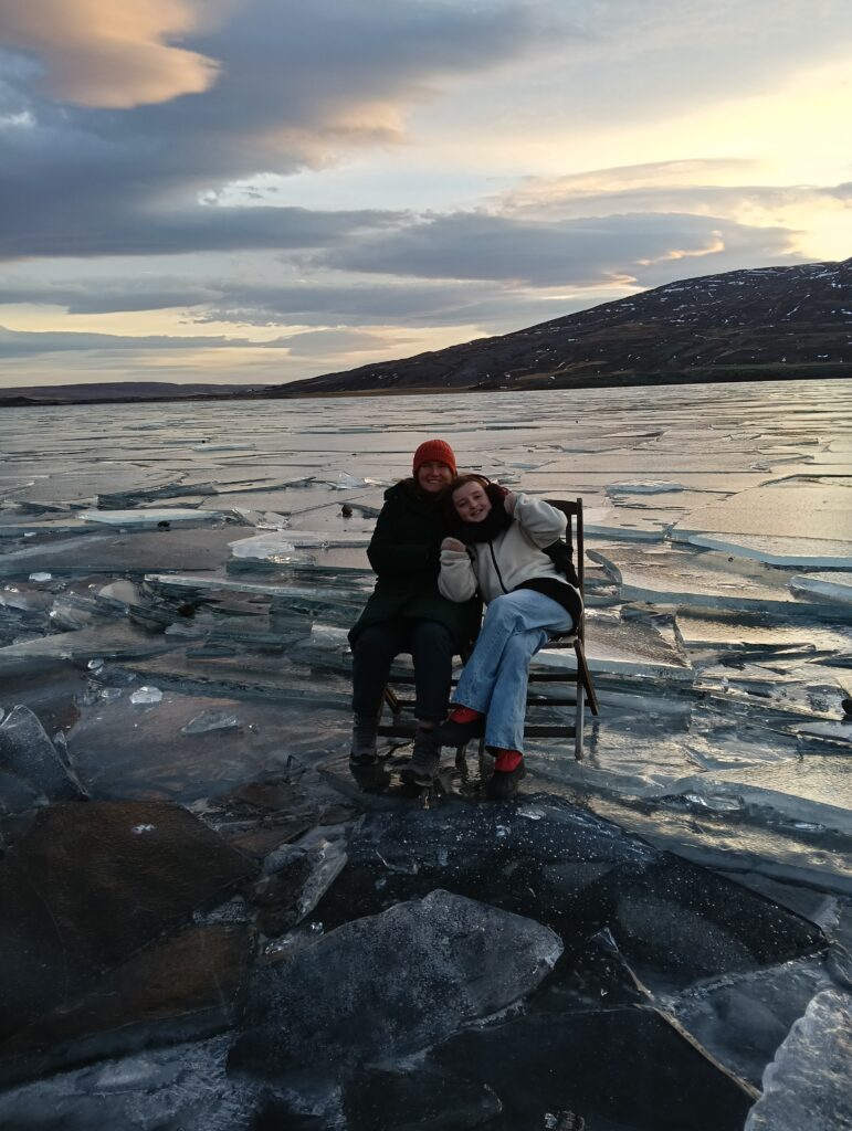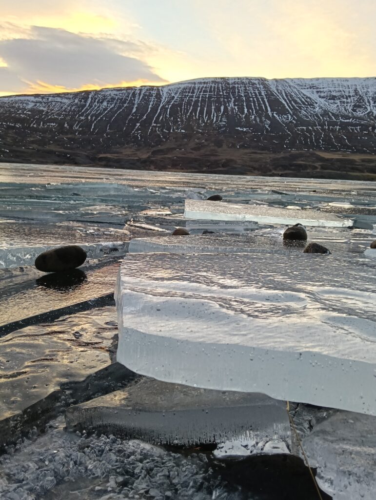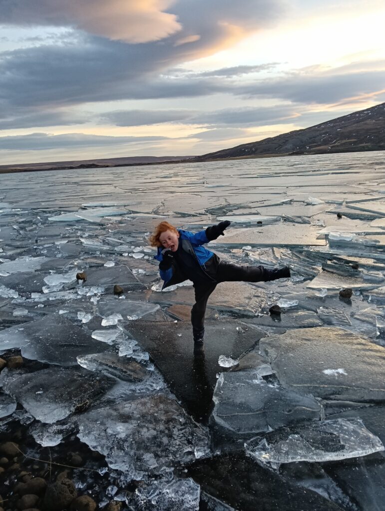On our way back, we paused at Ljosavatn, a serene lake surrounded by mountains. It’s the type of spot for a picnic or simply letting the kids paddle and skip stones, with no crowds to worry about. What made it for us was the thick ice that had completely frozen. This was inches thick and Nyle in particular enjoyed throwing rocks and trying to smash up the ice. It was cold though!