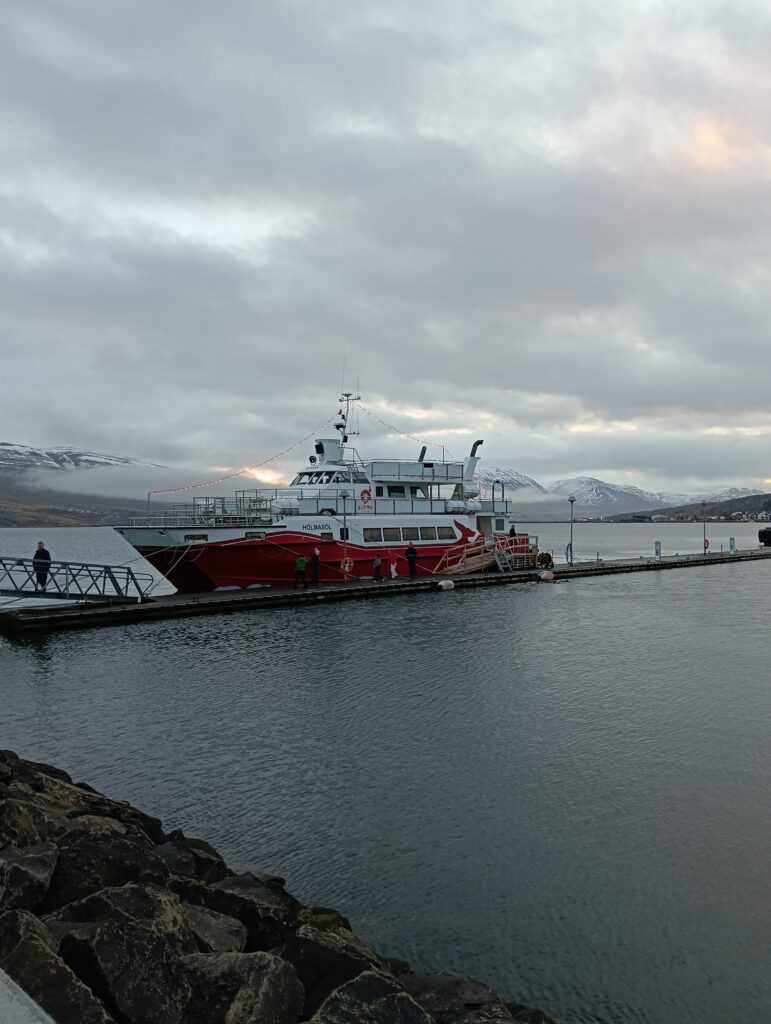 In winter departures are daily at 11am. The total trip duration is around 2.5-3.5 hours, sailing around 1 hour in each direction from Akureyri with time bobbing around waiting to spot any whales or porpoises.
