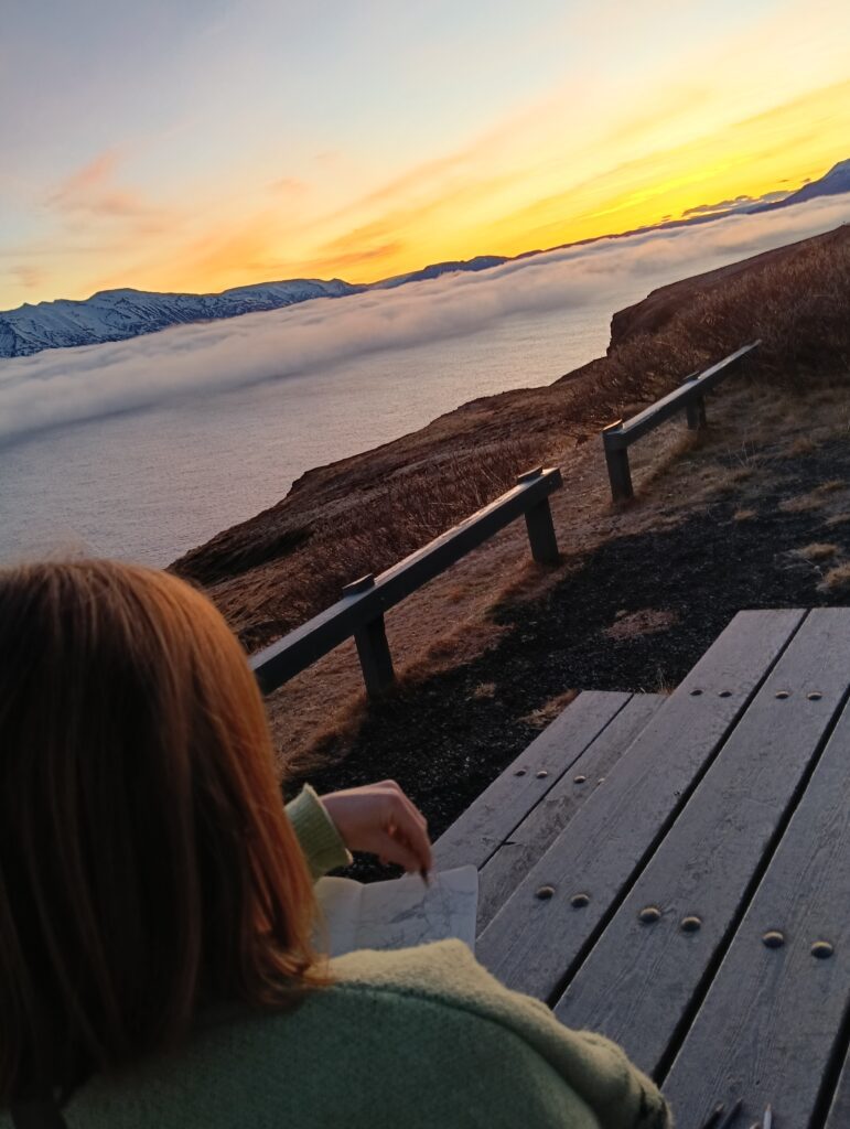 Dalvik, a charming fishing village 40 minutes north, had a peaceful harbour scene and a fantastic bakery. Migandifoss waterfall wowed us with its thunderous cascade and epic views back down the Fjord. And the drive to Siglufjordur was a treat in itself going through long tunnels, winding coastal roads, dramatic cliffs, and colourful houses. We drove to the view point at the end and then stopped off in the town for hot chocolates and cake.