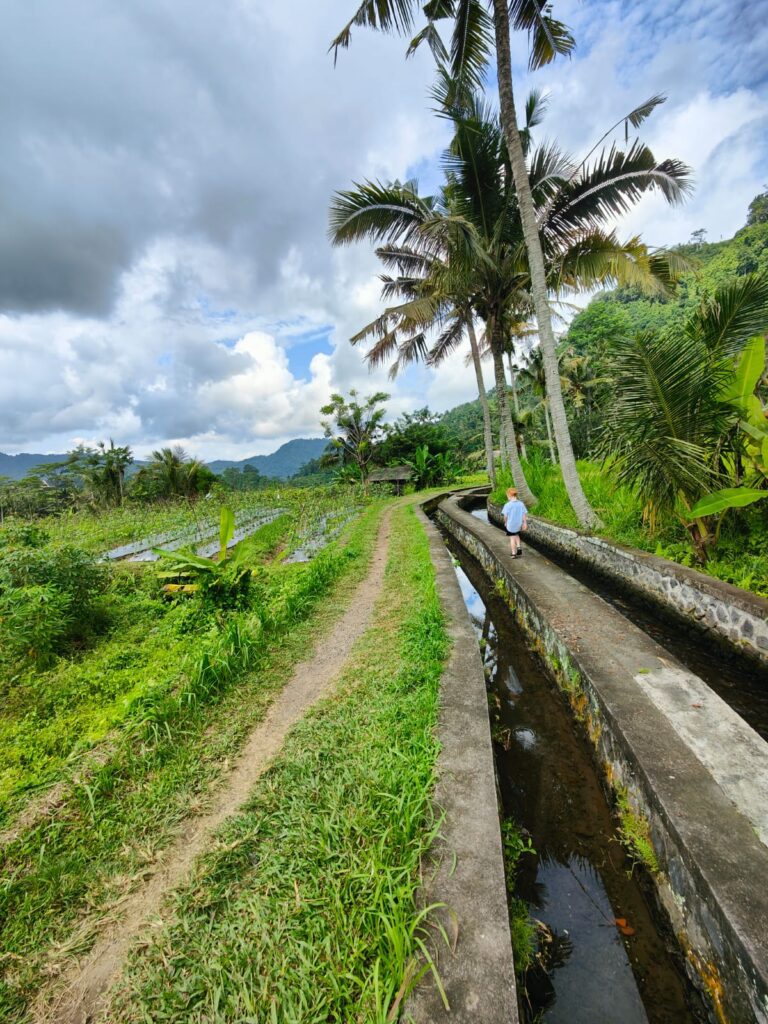 On the outskirts of Sideman, aptly named Sideman rice terrace trek, there is a 3km trail through the greenery. It’s not only rice terraces but rather allotment style with chillis and runner beans being the main crop grown. The locals are working their fields whilst you walk past. This is worldschooling at its best!