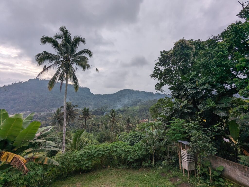 The landscape here is simple – it’s green and beautiful. Our view from our little homestay (Abian Dauh) was one of lush. Green vegetation clung to the hillside, and then rice terraces and gardens lay at the base. Roads are more rustic and it’s worthwhile noting that Grab and Gojek don’t exist here. Expect to walk (the distances aren’t far but it is very hilly) or hire a moped for 70k/£3.50 a day – driving a moped here is very easy due to the quiet roads!